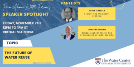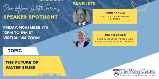 Join the Penn Alumni Water Forum for the next edition of our Speaker Spotlight series, featuring a timely discussion on water reuse and its role in shaping the future of water systems.