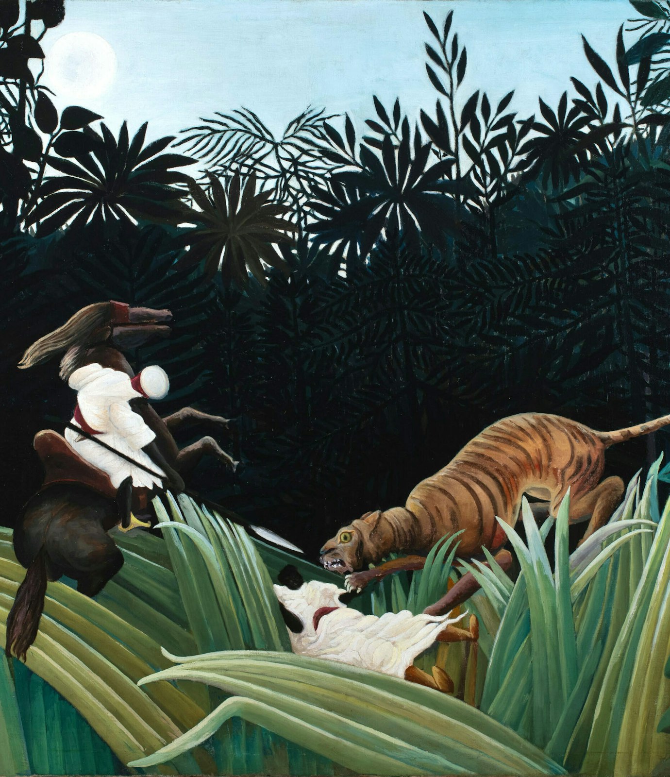 A docent will guide us as we embark on an immersive journey into the captivating realm of Henri Rousseau, a trailblazing, self-taught painter and a pivotal influence to modern artists such as Picasso. His paintings range from imaginative visions of the jungle to portraits that captured his neighbors and loved ones.